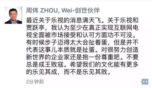 樂視控股傳播副總裁程時盛又在微信朋友圈發(fā)文對此事做了進(jìn)一步澄清。
