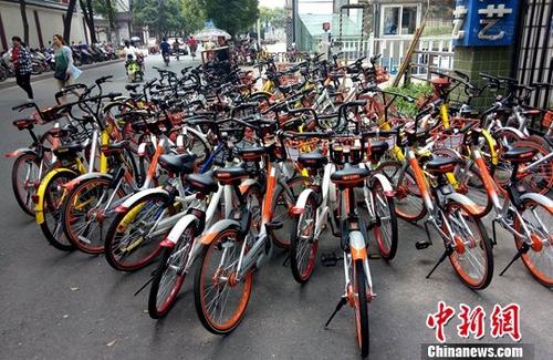 資料圖:江西南昌一共享單車停放點。 中新社記者 劉占昆 攝