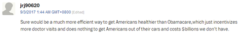 網(wǎng)友jrj90620:“對(duì)美國(guó)人的健康來(lái)說(shuō),共享單車(chē)可比奧巴馬醫(yī)保更有效?!?/font>