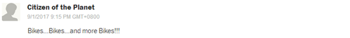 網(wǎng)友Citizen of the Planet:“自行車(chē)……自行車(chē)……我要更多自行車(chē)?。?!”