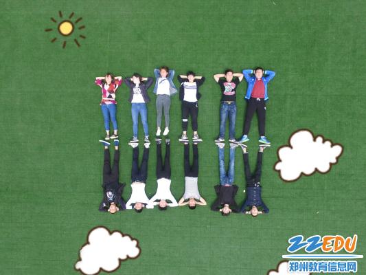 拍攝現(xiàn)場(chǎng),只見在17屆航空班班長(zhǎng)孫昱的指揮下,全體同學(xué)按照先前規(guī)劃好的分組,在地面組成各種樣式的圖案。拍攝現(xiàn)場(chǎng)學(xué)生們熱情洋溢,喜笑顏開。在歡樂的氣氛中,為在鄭州市經(jīng)濟(jì)貿(mào)易學(xué)校度過(guò)的無(wú)悔的青春,留下了濃墨重彩的一份記憶。