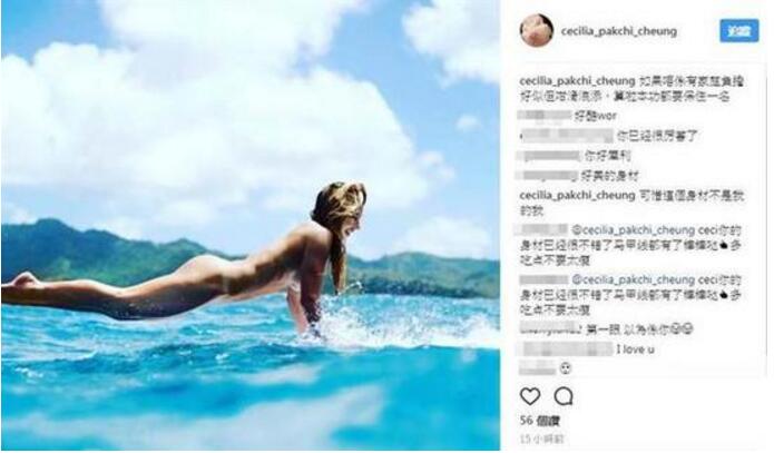 平時愛運動的張柏芝,時常曬出美照,5日她PO出外國模特兒裸照寫下:“如果不是有家庭負(fù)擔(dān),好想她這樣滑浪”。似乎也想放縱一下,網(wǎng)友大贊這身材超美,她感嘆說:“可惜不是我的”,可見對自己要求頗高。