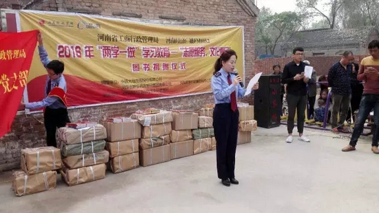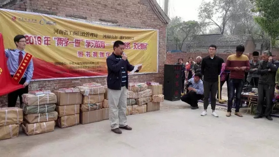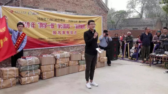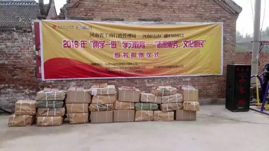 今天,河南省工商局聯(lián)合河南經(jīng)濟(jì)廣播FM1032開展“兩學(xué)一做”志愿服務(wù)文化惠民圖書捐贈活動,來到封丘縣荊隆宮鄉(xiāng)孫蔡寨村。