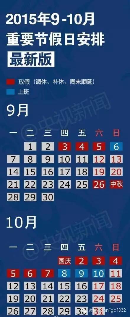 圖解:中秋國慶放假安排
