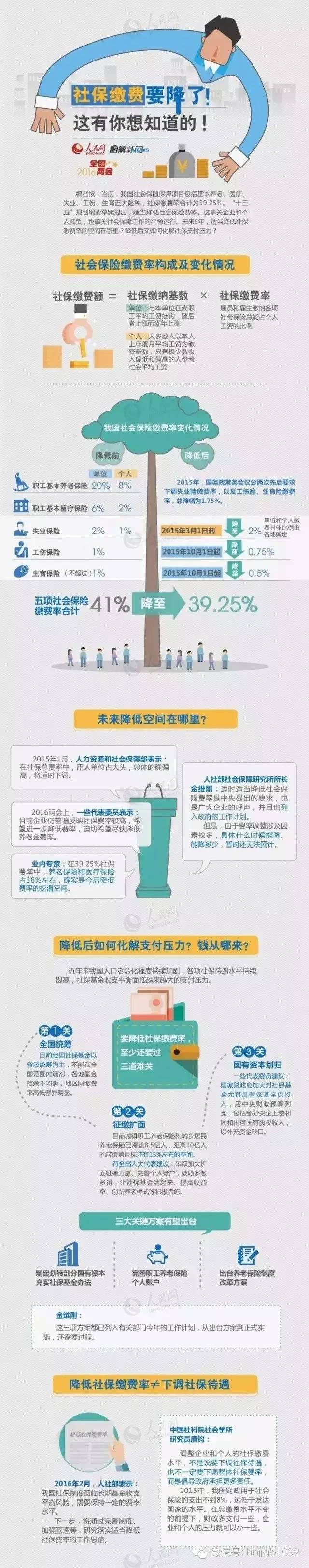 當(dāng)前,我國(guó)社保包括基本養(yǎng)老、醫(yī)療、失業(yè)、工傷、生育五大險(xiǎn)種,繳費(fèi)率合計(jì)為39.25%。適當(dāng)降低社保繳費(fèi)率的空間在哪里?降低后如何化解社保支付壓力?如圖——