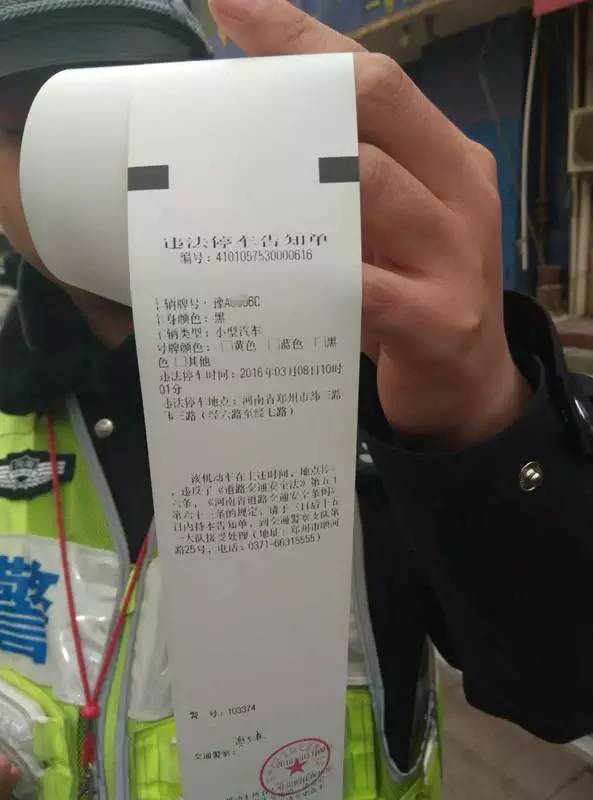今天上午十點,鄭州交巡警一大隊三中隊的謝民警就利用這種新型警務(wù)通對鄭州緯三路經(jīng)六路口違章停放的車輛進(jìn)行了非現(xiàn)場執(zhí)法,交警將駕駛員的身份信息和車輛信息輸入警務(wù)通后,核對無誤后,現(xiàn)場打印出違法停車告知單,而違法信息立刻就被上傳到了系統(tǒng)!