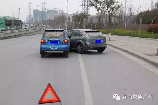 3、為避免發(fā)生次生交通事故,以及在處理事故時(shí)被當(dāng)成違法停車(chē)誤抓拍,請(qǐng)?jiān)谑鹿侍幚硗戤呏?,全程開(kāi)啟雙閃燈,放置三角警示牌;