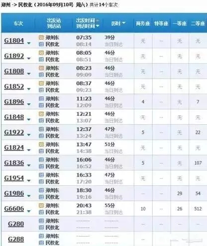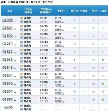 最快的一趟車G368/9,19點(diǎn)05分從上海虹橋始發(fā),23點(diǎn)02分到達(dá)鄭州東,耗時(shí)3小時(shí)57分,中途僅??磕暇┖托熘菡荆溆嗔熊囘\(yùn)行時(shí)間都在4小時(shí)到5小時(shí)之間。