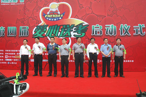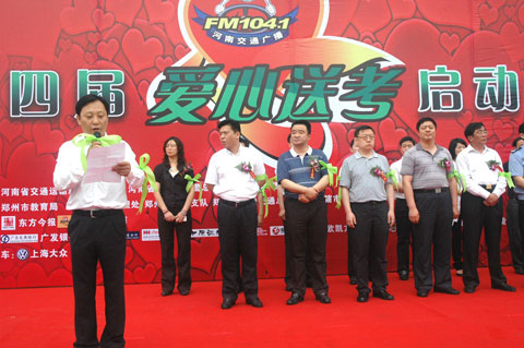 6月4號(hào)上午,隨著河南人民廣播電臺(tái)總編輯張大寶宣布啟動(dòng)。河南交通廣播第四屆全省愛心送考大型公益活動(dòng)正式拉開帷幕。河南省交通運(yùn)輸廳道路運(yùn)輸局、河南省公安廳交警總隊(duì)、河南人民廣播電臺(tái)以及鄭州市教育局、鄭州市交警支隊(duì)、鄭州市客運(yùn)管理處、鄭州市公交總公司等多家單位的領(lǐng)導(dǎo)出席了活動(dòng)儀式。