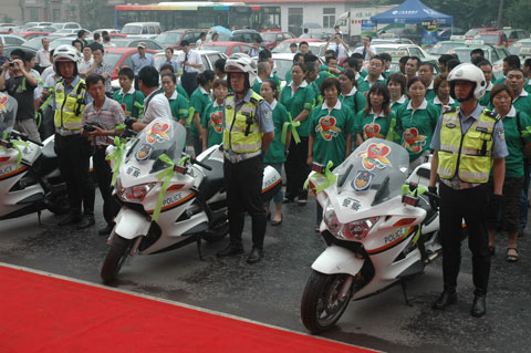 活動(dòng)現(xiàn)場(chǎng)匯集了許多愛心車友,鄭州市交警支隊(duì)也派出三個(gè)交警“飛鷹”小組參加啟動(dòng)儀式