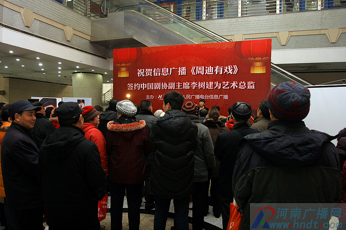 1月17日上午,河南人民廣播電臺(tái)《周迪工作室》掛牌儀式及中國戲劇家協(xié)會(huì)副主席李樹建先生受聘《周迪有戲》欄目藝術(shù)總監(jiān)簽約儀式在廣播大廈一樓大廳舉行。河南人民廣播電臺(tái)副臺(tái)長李海軍、河南人民廣播電臺(tái)信息廣播總監(jiān)李金鋒出席儀式。