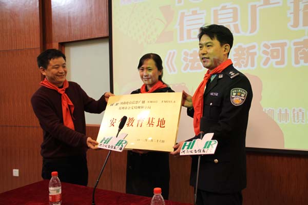 2012年3月26日是第十七個“全國中小學安全教育日”,在教育日當天舉行“中小學安全教育基地”掛牌儀式,河南電臺信息廣播依托日常欄目《法制新河南》的整合資源,將中小學安全宣傳教育常態(tài)化。據(jù)河南電臺信息廣播總監(jiān)李金鋒介紹,“教育基地建立以后,河南電臺信息廣播將聯(lián)合鄭州市公安局柳林分局,通過信息廣播AM603、FM105.6廣播頻率,以《法制新河南》欄目為陣地,長期持久的宣傳中小學安全教育知識,并為柳林鎮(zhèn)第四小學的學生提供書籍、器械等安全教育的物品,節(jié)目主持人和柳林分局的警官還將不定期的深入校園內,跟學生們面對面的交流、一對一的輔導?!?br />