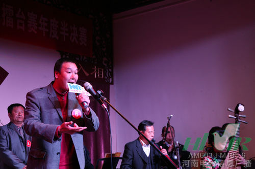 今天(3月19日)上午,鄭州德樂相聲社400多平米的演出大廳座無虛席,來自全省各地的21名戲迷選手匯聚一堂,2012年“中原戲迷擂臺賽”下半年度半決賽正式開賽。經(jīng)過激烈角逐,來自鄭州的李宗書、王彩霞、劉梁、張華,新鄉(xiāng)的楊國朋、王愛梅,新密的馬少峰,周口的吳瑞霞,長垣的劉艷東,鶴壁的王少紅晉級十強(qiáng),直通總決賽。