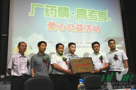 6月3號,河南電臺(tái)信息廣播聯(lián)合河南電視臺(tái)第九頻道、廣州白云山何濟(jì)公制藥廠,在鄭州大學(xué)共同舉辦了以“愛心助高考 迎接新人生”為主題的“廣藥情 高考季”系列愛心公益活動(dòng)。