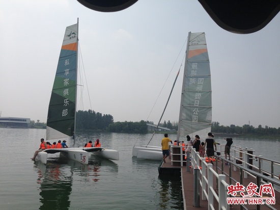 映象網訊 (記者 殷清卉)提起帆船,大家一般想起在大海里暢游的感覺,但是現在在我們鄭州也可以玩帆船了,7月27日,來自全省各地的300多名幸運聽眾,便在河南電臺信息廣播《房產江湖》節(jié)目組的帶領下,在雁鳴湖國際假日公園過了一把帆船癮。
