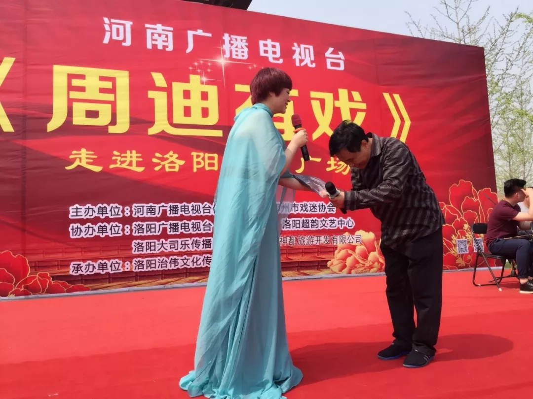 上午10點(diǎn)整,伴隨著粉絲們的歡呼和吶喊聲,主持人周迪驚艷亮相?!拔覀兟尻栍幸淮笈艿系闹覍?shí)聽眾,我們都希望周迪來我們洛陽主持一場活動,我們的想法得到了洛陽豫劇院、洛陽曲劇團(tuán)領(lǐng)導(dǎo)的支持,同時我們聯(lián)系了周迪,沒想到周迪非常爽快地答應(yīng)了。今天我為《周迪有戲》走進(jìn)我的家鄉(xiāng)感到驕傲,也為見到我仰慕多年的主持人周迪感到幸福!”周迪鐵桿粉絲程有良在舞臺上激動地說。
