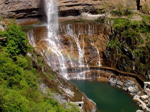 紅石河碧水橫溢、紅綠相映、色彩斑斕、明麗如畫,因海拔1100米被譽(yù)為“太行天河”。從紅石河畔俯瞰,山谷幽深、流水潺潺,河水順著光潔平整、錯(cuò)落有致的紅石板流淌不息,直沖而下形成又一著名景點(diǎn)——天河大瀑布。紅石河的右畔是觀音洞,觀音洞里的泉水常年不斷、甘甜可口,用來(lái)泡茶增三分香,煮飯?jiān)黾尤痔穑F(xiàn)在敞開(kāi)供應(yīng),保你一杯解風(fēng)塵,二杯去疲乏,三杯大汗落。 八里溝的山,八里溝的水,甚至八里溝的每一塊石頭都引起世界的好奇。景區(qū)森林覆蓋率達(dá)90%,如今,八里溝景區(qū)已經(jīng)成為國(guó)內(nèi)很多前衛(wèi)、時(shí)尚的游客非常向往的一個(gè)人間天堂、世外桃源,也是春季旅游的經(jīng)典線路。