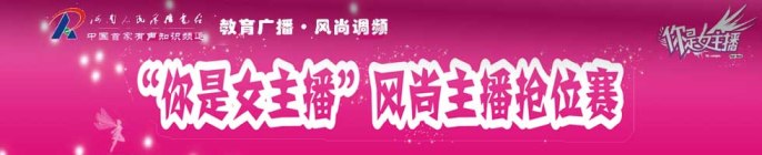 2011年12月16日,黃河科技學(xué)院,能容納1000多人的音樂廳座無虛席,由河南人民廣播電臺(tái)、河南省學(xué)生聯(lián)合會(huì)主辦、教育廣播承辦的“你是女主播大賽·風(fēng)尚主播搶位賽”決賽正在如火如荼地舉行。從全省40多所高校、5000多名報(bào)名者中脫穎而出的12位晉級(jí)選手各展絕技,你方唱罷我登場(chǎng),在經(jīng)過了“聽我微節(jié)目”(100秒微節(jié)目展示);“臨危不懼”(危機(jī)主持、現(xiàn)場(chǎng)采訪教育廣播風(fēng)尚調(diào)頻女主播)及“真我風(fēng)采”(個(gè)人才藝展示)三輪激烈角逐后,最終鎖定一、二、三等獎(jiǎng),而三個(gè)多小時(shí)的巔峰對(duì)決,也為現(xiàn)場(chǎng)的觀眾和收音機(jī)前的聽眾呈現(xiàn)了一場(chǎng)精彩的視聽盛宴。