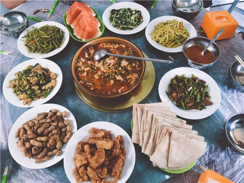 品嘗完清甜美味的葡萄之后,已經(jīng)到中午了,大家一起吃個農(nóng)家飯吧!