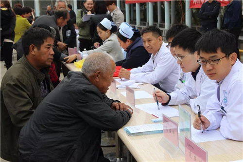 這位老人感動地說:“這些醫(yī)生真負責(zé),坐下幾個小時,忙得連點水也沒喝上!他們看我們歲數(shù)大了,看病不方便了,今天專門來這里,為我們看病、查身體,開藥,都不收錢,我們真高興,生活在這樣一個社會真知足!”