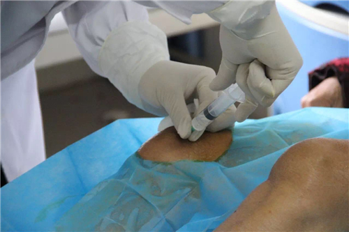 這位大姐有骨性關(guān)節(jié)炎,腿部多處常年疼痛。這位醫(yī)生很認真的幫助大姐確認疼痛位置,并且用醫(yī)院專門帶來的治療儀為大姐治療。醫(yī)生說先治療一次,如果疼痛緩解大概進行3-9次的治療就可以痊愈了。