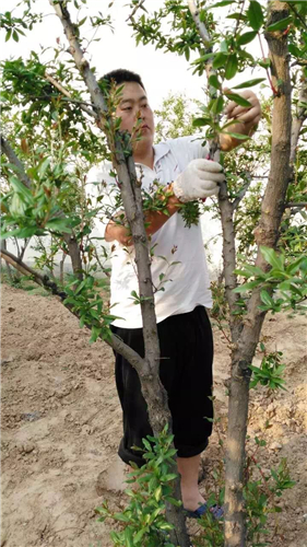 農(nóng)業(yè)生產(chǎn)過程的管理,對石榴的品控尤為關(guān)鍵。既然是農(nóng)民就要會種地,種石榴。要學(xué)習(xí)扦插樹苗、修剪果樹、施肥、翻地。父輩是靠經(jīng)驗(yàn),小綱他們照著做,慢慢發(fā)現(xiàn)經(jīng)驗(yàn)有時也會錯,每個人說法不一,這就要靠自己一點(diǎn)點(diǎn)去實(shí)踐,他們也會把自己摸索的技術(shù)通過萬氏石榴合作社的微信公眾號分享給更多人。