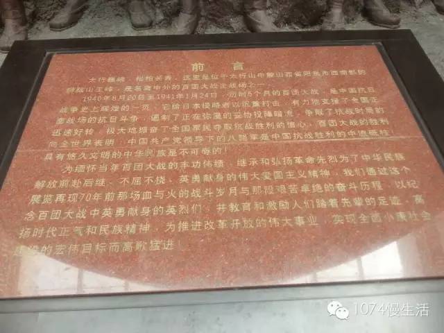 紀(jì)念抗日戰(zhàn)爭(zhēng)暨世界反法西斯戰(zhàn)爭(zhēng)勝利70周年追隨先輩足跡,唱響時(shí)代凱歌——紀(jì)念抗日戰(zhàn)爭(zhēng)暨世界反法西斯戰(zhàn)爭(zhēng)勝利70周年晉冀魯豫記者大型聯(lián)合采訪活動(dòng)《回聲》拉開(kāi)大幕前方報(bào)道晉冀魯豫四省聯(lián)和采訪團(tuán)的第二站來(lái)到了山西陽(yáng)泉縣獅腦山百團(tuán)大戰(zhàn)紀(jì)念館,百團(tuán)大戰(zhàn)是中國(guó)抗日戰(zhàn)爭(zhēng)時(shí)期,中國(guó)共產(chǎn)黨領(lǐng)導(dǎo)下的八路軍、新四軍與日軍在中國(guó)華北地區(qū)晉察冀邊區(qū)發(fā)生的一次規(guī)模最大、持續(xù)時(shí)間最長(zhǎng)的戰(zhàn)役。