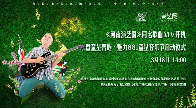 童星智造·魅力881童星音樂節(jié)啟動儀式暨《河南演藝圈》同名歌曲mv開機(jī)將于3月18日下午2點河南新凱迪·凱迪拉克品鑒中心舉行,本次活動由魅力881河南廣播電視臺音樂廣播和河南演藝圈主辦,讓我們一起為本土童星音樂藝術(shù)加油打CALL !??!
