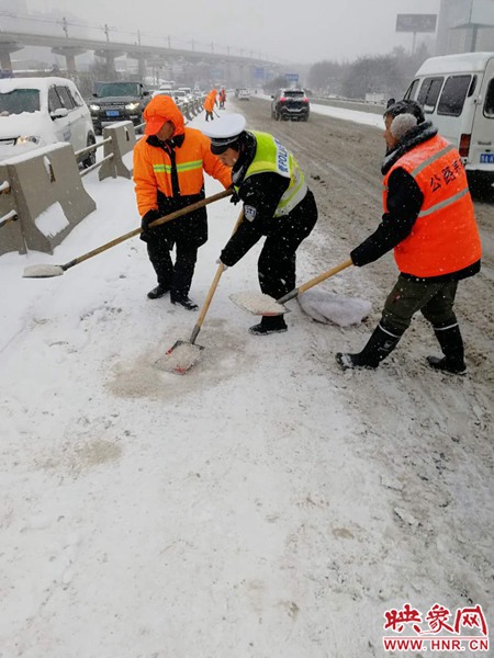 交警六大隊增加對金水東路、商鼎路、商都路的巡查密度,利用喊話器在事故易發(fā)路段提醒司乘人員減速慢行,及時掌握路面積雪、車流量等道路通行情況。市區(qū)交警九大隊在金水路沿線協(xié)助清掃積雪,救助滑倒的行人5人。