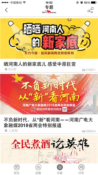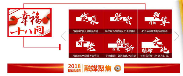 映象網(wǎng)訊(記者 秦雯)看兩會(huì)最熱最新鮮,看百姓關(guān)注,看代表委員風(fēng)采,看各界如何解讀報(bào)告。1月22日起,河南進(jìn)入2018兩會(huì)時(shí)間。大象融媒帶著問(wèn)題聚焦兩會(huì),帶著答案回應(yīng)網(wǎng)民。其間,大象融媒旗下所屬各媒體大顯身手,貢獻(xiàn)出大量精彩的報(bào)道,直播、高清圖、系列策劃及H5產(chǎn)品等,這些內(nèi)容一經(jīng)推送,就吸引百姓高度關(guān)注,有些板塊更是形成“兩會(huì)熱門(mén)話題”和“網(wǎng)絡(luò)熱詞”,被網(wǎng)友分享,引代表委員熱議。