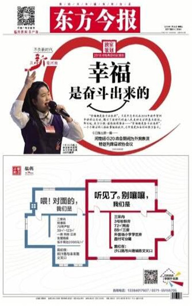 同時(shí),東方今報(bào)還推出2018河南兩會(huì)特別策劃——“幸福都是奮斗出來(lái)的”,側(cè)重報(bào)道正在奮斗且勵(lì)志的社會(huì)中堅(jiān)力量,一個(gè)個(gè)鮮活的人物故事勉勵(lì)我們,為中原更加出彩而努力奮斗。截至目前已刊登四篇報(bào)道,分別是《幸福是奮斗出來(lái)的系列報(bào)道之(1) 河南妞兩次為“彭媽媽”表演 特邀列席縣政協(xié)會(huì)議》《幸福是奮斗出來(lái)的系列報(bào)道之(2) 90后辭年薪二十萬(wàn)工作創(chuàng)業(yè):我的心愿是“藝術(shù)+”》《幸福是奮斗出來(lái)的系列報(bào)道之(3) “海歸農(nóng)夫”師鵬飛:現(xiàn)代農(nóng)場(chǎng)放飛創(chuàng)業(yè)夢(mèng)》。
