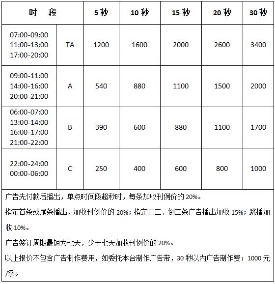標(biāo)準(zhǔn)廣告刊例價