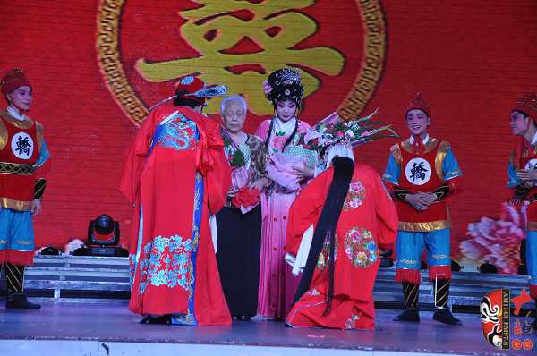 在當(dāng)天的演出中,除了關(guān)小鳳的精彩演唱之外,中國戲劇梅花獎得主、豫劇名丑金不換,陳門再傳弟子、中國戲劇梅花獎得主徐俊霞,關(guān)靈鳳親傳弟子霍梅英,戲曲名票龐笑天、吳素芹等也表演了各自的拿手好戲,為關(guān)小鳳助興演出。原西安獅吼劇團(tuán)的高材生、陳素真大師的學(xué)生陳素英今年78歲,在豫劇《三上轎》中她扮演婆婆,為關(guān)小鳳甘當(dāng)綠葉,其老到的表演也獲得了戲迷的熱情掌聲。鶴壁市豫劇團(tuán)團(tuán)長、豫劇名丑金不換剛剛擔(dān)任完河南省第七屆青年演員大賽的評委,就不辭勞苦地趕到演出現(xiàn)場。他介紹說,自己和關(guān)小鳳是封丘于店戲校的同學(xué),當(dāng)年他們那一屆學(xué)生當(dāng)中關(guān)小鳳是表現(xiàn)最優(yōu)秀的。關(guān)小鳳經(jīng)歷坎坷,但對藝術(shù)卻非常執(zhí)著,看到老同學(xué)的精彩表現(xiàn)他非常高興,希望關(guān)小鳳能把祥符調(diào)陳派藝術(shù)發(fā)揚(yáng)下去,祝福她在藝術(shù)道路上越走越好!