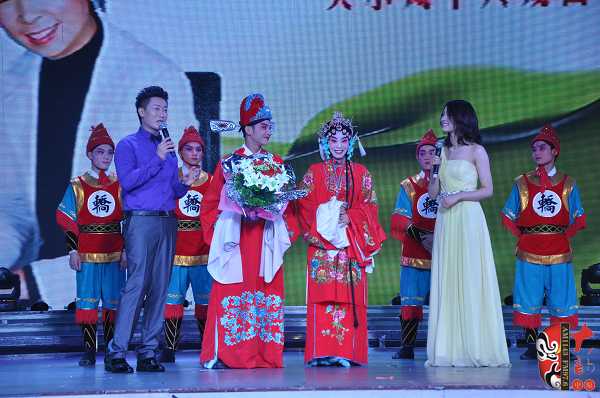 在6月16日舉辦的關(guān)小鳳個人戲曲專場中,關(guān)小鳳之女、24歲的張聰表演了豫劇《情斷狀元樓》“打神告廟”及《抬花轎》的“坐轎”兩折戲。畢業(yè)于河南省藝校的張聰現(xiàn)場表演稍顯稚嫩,但也獲得了觀眾的熱情鼓勵。張聰在接受記者采訪時說,自己戲校畢業(yè)之后到了福建省一閩劇團(tuán)工作,已經(jīng)有五、六年未接觸豫劇了。媽媽歷經(jīng)艱辛把自己帶大,特別不容易,這次為了支持媽媽的專場演出,她專程回河南、花十天時間趕排了兩折戲……在張聰表演完《抬花轎》的“坐轎”一折,一位身穿狀元紅袍、手捧鮮花、操南方口音的英俊小伙上臺向“周鳳蓮”求婚,經(jīng)張聰介紹,觀眾才豁然明白,英俊小伙乃她的老公,結(jié)婚時,媽媽關(guān)小鳳因為忙于工作未能參加,借此現(xiàn)場要補(bǔ)行跪拜大禮,以感謝母親的養(yǎng)育之恩。此情此景,讓現(xiàn)場不少觀眾為之動容。