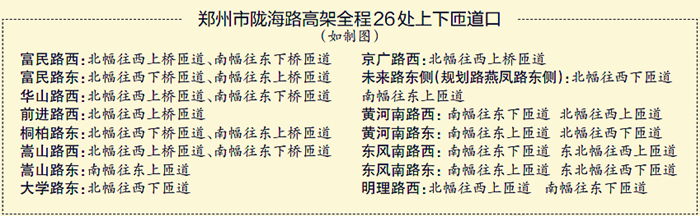 需要注意的是,由于地面一層、部分立交及上下橋匝道尚未完工,還不能完全發(fā)揮分流疏導(dǎo)的作用,高架開(kāi)通后,嵩山路、大學(xué)路、京廣路、未來(lái)路、黃河南路、東風(fēng)南路、明理路等下橋匝道車(chē)流會(huì)增大,給地面交通帶來(lái)沖擊,在部分區(qū)域可能會(huì)出現(xiàn)交通擁堵,到時(shí)可能會(huì)出現(xiàn)上橋容易下橋難的情況。