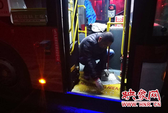 映象網(wǎng)訊(記者 燕子丹 文/圖)13日夜間,降雪如約而至。鄭州公交二公司全面啟動(dòng)惡劣天氣應(yīng)急預(yù)案,應(yīng)急工作領(lǐng)導(dǎo)小組于13日夜間分赴各個(gè)公交場(chǎng)站,對(duì)公交車輛進(jìn)行安全檢查,在場(chǎng)區(qū)、站點(diǎn)等地鋪灑融雪劑,保證車輛第二天能夠安全上路。