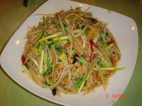 細(xì)香碟兒上灶,一道名字聽起來特別文藝的美食。王樹誠跟記者介紹說:“他是用那種香菜根,加上筍尖根、再加上蘆筍根,還有豬耳朵的耳根,總共是有5到6種跟炒在一塊,特別爽口,特別下酒。招待外來朋友的話,點上那個菜也是一個就是比較好的一種享受?!?/p>