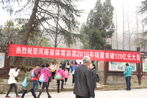 2016年最令河南體彩人引以為傲的是全省年銷量突破120億大關(guān),再次實(shí)現(xiàn)新突破和高增長,真是振奮人心。信陽分中心特別制作了大旗和條幅來在眾人面前展示河南體彩人的驕人業(yè)績。在省中心、市體育局的正確領(lǐng)導(dǎo)下,在彩民朋友的支持和社會各界的關(guān)心下,信陽體彩全年銷量6.75億元,再攀新高,為國家貢獻(xiàn)體彩公益金2.36億元。