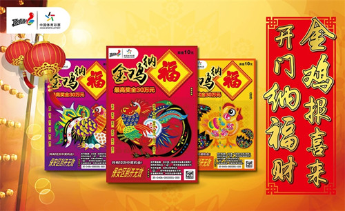 每逢歲末年初,頂呱刮都會(huì)推出賀歲票,今年也不例外,雞年賀歲票“金雞納福”提前與彩民們見(jiàn)面了。該票有紅、紫、黃三款,以寓意吉祥如意的錦雞為主題,絢麗的色彩中透露出濃濃的中國(guó)風(fēng)。單張面值10元,有12次中獎(jiǎng)機(jī)會(huì),最高獎(jiǎng)金30萬(wàn)元,游戲形式為:刮開(kāi)覆蓋膜,在任意一場(chǎng)游戲中如果出現(xiàn)兩個(gè)相同的“雞”標(biāo)志,即中得該場(chǎng)游戲右方所示的金額;如果出現(xiàn)“?!睒?biāo)志,即中得該場(chǎng)游戲右方所示金額的兩倍。