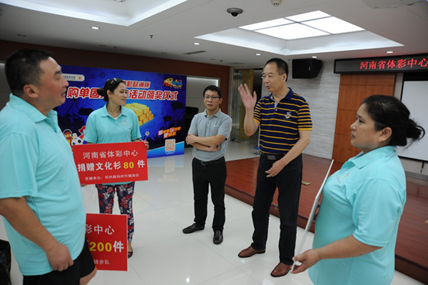 據(jù)河南省體彩中心主任孫和平介紹,中國體育彩票作為國家公益彩票,其發(fā)行宗旨是“來之于民 用之于民”,一直履行著支持全民健身這一光榮使命。去年是《意見》印發(fā)的第二年,河南體彩中心已開始落實該文件精神,向社會健身團體捐贈了3000件健身服裝,受到健身群體的歡迎和高度贊揚,取得了良好的社會效益。今年的捐贈是河南體彩中心支持我省全民健身這一公益活動的延續(xù),今后我們將嘗試擴大捐贈范圍,讓更多的健身群體在強身健體、重視體育、支持體育、參與體育的過程中,感受到中國體育彩票的關注和支持,讓更多的群眾在健身中受益。孫主任表示:河南體彩中心也希望通過持續(xù)和擴大類似的公益活動,為我省的父老鄉(xiāng)親在強身健體、健康生活的道路上,做出河南體彩人積極的貢獻。今年我省的“全民健身日”主題活動將在焦作舉行,各地市也會開展大規(guī)模的全民健身主題活動,預祝我省的全民健身主題活動圓滿成功。