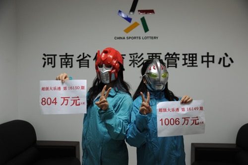 [摘要] 12月21日,體彩大樂透第16150期開出106注頭獎(jiǎng),單注基本獎(jiǎng)金500萬余元,其中,我省彩民收獲4注頭獎(jiǎng)。巧合的是,22日上午,中得第16149期和16150期頭獎(jiǎng)的我省偃師、三門峽倆女彩民一同現(xiàn)身省體彩中心,分別領(lǐng)取了大獎(jiǎng)。