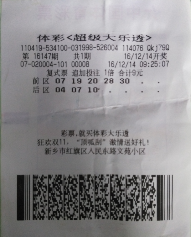 據(jù)尚先生介紹,他每次購(gòu)買(mǎi)彩票都是自己根據(jù)走勢(shì)圖和感覺(jué)進(jìn)行選號(hào),復(fù)式投注是他的最?lèi)?ài)。近期“大樂(lè)透”一等獎(jiǎng)?lì)l出,而復(fù)式投注命中一等獎(jiǎng)的幾率更是非常高。尚先生說(shuō):“我每次購(gòu)買(mǎi)‘大樂(lè)透’都不會(huì)忘記追加,追加投注帶來(lái)的獎(jiǎng)金對(duì)于復(fù)式票是非??捎^的?!鄙邢壬ㄟ^(guò)復(fù)式追加票共獲得本期中獎(jiǎng)獎(jiǎng)金也達(dá)到了5萬(wàn)多元。