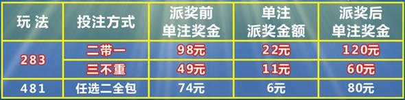 本次派獎既有彩民們喜聞樂見的老朋友任二全包”;也有近段時間火熱彩市的新朋友“二帶一”和“三不重”,以上3種投注方式參與派獎,最高加獎幅度達22.45%。