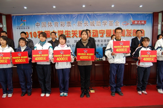 “中國體育彩票·新長城助學”活動是國家體彩中心自2005年起開展的一項資助優(yōu)秀特困大學生的全國大型公益助學項目。這個項目為優(yōu)秀特困大學生解了燃眉之急,為他們面對今后的生活增添了勇氣和動力。一些受助大學生現(xiàn)已走出校門,走上不同的工作崗位,用實際行動回報社會。截至2017年,“體彩·新長城”足跡遍布祖國大地,受益優(yōu)秀特困大學生達2091人,累計投入公益金達903.88萬元。