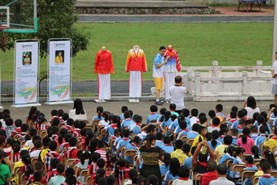 在建設美麗鄉(xiāng)村的社會背景下,“冠軍課堂”鄉(xiāng)村行是廣東省體彩中心、廣東省青少年體育聯(lián)合會對“公益體彩·快樂操場”活動的延伸,由國家級跳水教練、奧運冠軍教練胡恩勇帶領世界冠軍及優(yōu)秀運動員,歷時4個月,走進9地市的25 所山區(qū)中小學校,為那里的師生帶去體育器材,上一堂公益體育課,部分優(yōu)秀運動員還會在受助學校支教半年。活動為孩子們樹立了“愛運動,強體魄”的觀念,讓缺少體育器材和專業(yè)體育教師的孩子們都能“每天快樂運動一小時”。