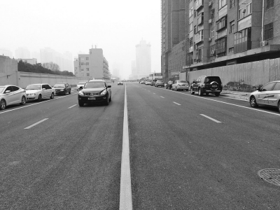 昨日上午11點(diǎn)30分,記者驅(qū)車從東明路緯四路口右轉(zhuǎn)向東進(jìn)入緯四路(東明路未來路段)(如右圖),只見嶄新的瀝青路面已完全鋪好,道路為雙向四車道,東西方向已經(jīng)有很多機(jī)動(dòng)車開始從這里“嘗鮮”。