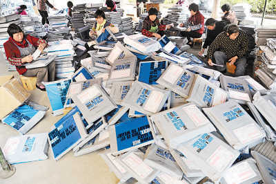 快遞公司員工在倉(cāng)庫(kù)外就地將包裹掃描后裝車(chē)。阿里巴巴發(fā)布數(shù)據(jù)稱(chēng),淘寶網(wǎng)平均每分鐘售出4.8萬(wàn)件商品。