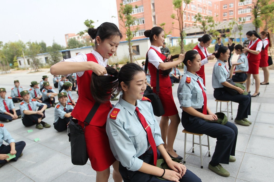 2015年9月17日,鄭州航院的“準空姐”們正在軍訓。