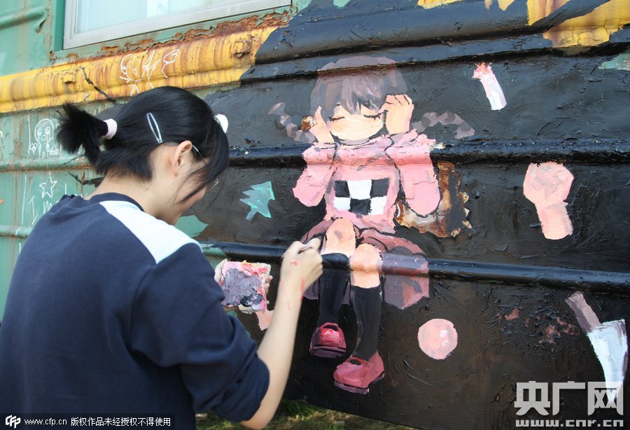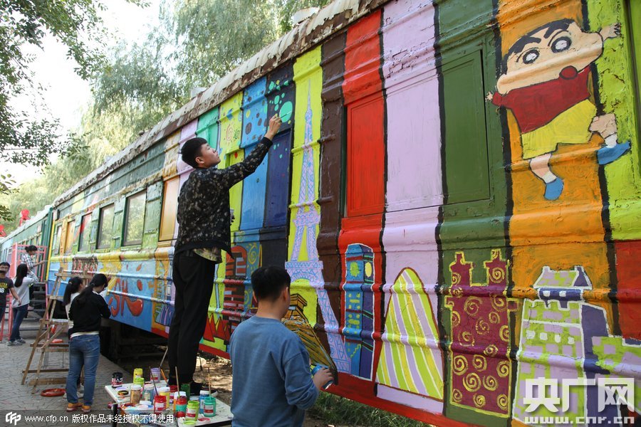 2015年10月10日,鄭州四禾美術(shù)中學(xué)充分發(fā)揮美術(shù)生的優(yōu)勢,對火車車身1進(jìn)行涂鴉改造,使火車宿舍看起來更加漂亮。