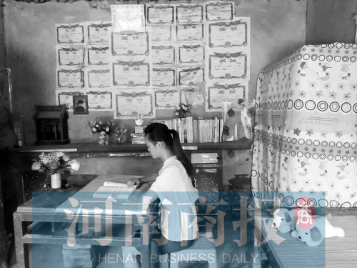 她家里唯一的“裝飾”,就是墻上貼的獎狀